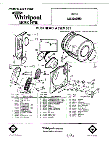 Whirlpool Dryer LAE3200W0 / Repair Parts