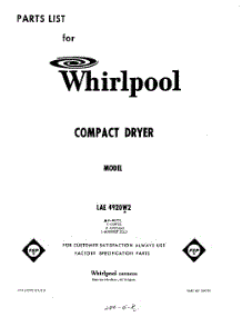 Whirlpool Dryer LAE4920W2 / Repair Parts