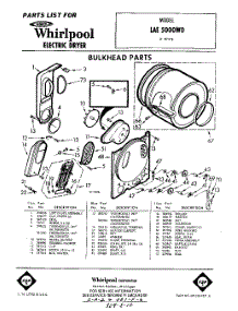 Whirlpool Dryer LAE5000W0 / Repair Parts