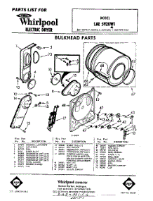 Whirlpool Dryer LAE5920W1 / Repair Parts