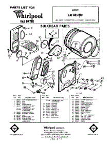 Whirlpool Dryer LAI8851W0 / Repair Parts