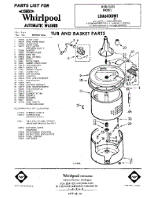 Whirlpool Washer LDA6400W1 / Repair Parts