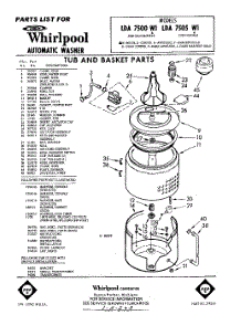 Whirlpool Washer LDA7500W1 / Repair Parts
