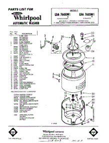 Whirlpool Washer LDA7605W1 / Repair Parts