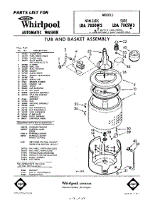 Whirlpool Washer LDA7805W3 / Repair Parts