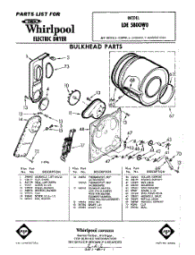 Whirlpool Dryer LDE5800W0 / Repair Parts