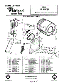 Whirlpool Dryer LDE6400W0 / Repair Parts