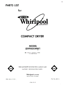 Whirlpool Dryer LE4900XMW1 Repair Parts