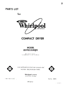 Whirlpool Dryer LE4905XMW0 Repair Parts