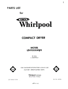 Whirlpool Dryer LE4930XMW0 Repair Parts