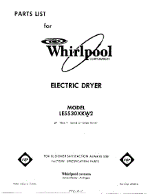 Whirlpool Dryer LE5530XKW2 Repair Parts