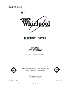 Whirlpool Dryer LE5530XMW2 Repair Parts