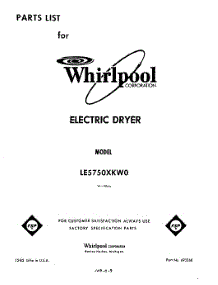 Parts for Whirlpool LE5750XKW0 Dryer
