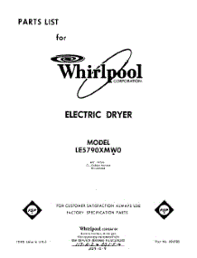 Whirlpool Dryer LE5790XMW0 Repair Parts