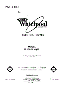 Whirlpool Dryer LE5800XMW1 Repair Parts