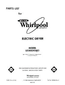 Whirlpool Dryer LE5800XSW3 Repair Parts