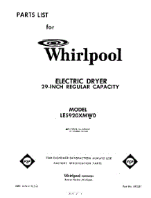 Parts for Whirlpool LE5920XMW0 Dryer