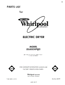 Whirlpool Dryer LE6800XPW0 Repair Parts