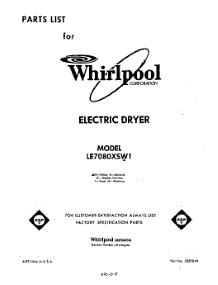 Whirlpool Dryer LE7080XSW1 Repair Parts