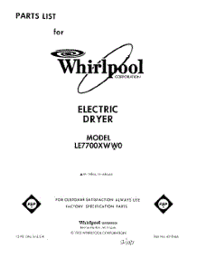 Whirlpool Dryer LE7700XWW0 Repair Parts