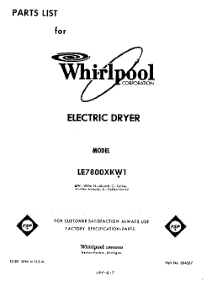Parts for Whirlpool LE7800XKW1 Dryer