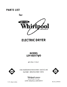 Whirlpool Dryer LE9100XTW0 Repair Parts