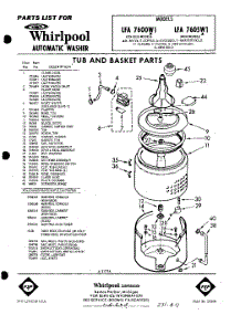 Whirlpool Washer LFA7600W1 / Repair Parts