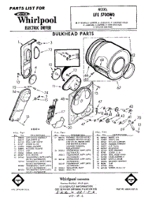 Whirlpool Dryer LFE5700W0 / Repair Parts
