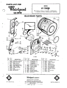 Whirlpool Dryer LFI7501W0 / Repair Parts