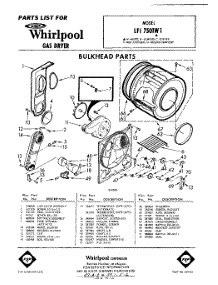 Whirlpool Dryer LFI7501W1 / Repair Parts