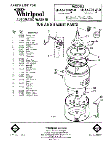 Whirlpool Washer LHA6700W0 / Repair Parts