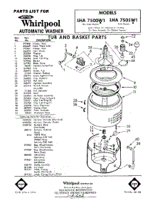Whirlpool Washer LHA7500W1 / Repair Parts