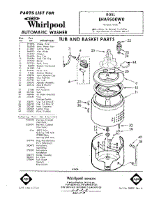Whirlpool Washer LHA9500W0 / Repair Parts