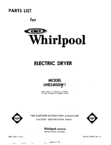 Whirlpool Dryer LHE5800W1 Repair Parts