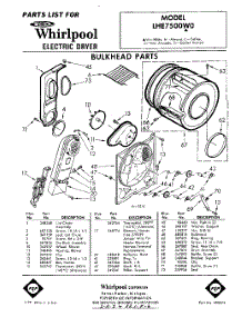 Whirlpool Dryer LHE7500W0 / Repair Parts