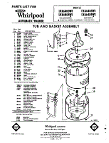 Whirlpool Washer LVA6409W1 / Repair Parts