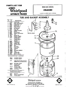 Whirlpool Washer LVB6400W1 / Repair Parts