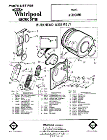 Whirlpool Dryer LVE3200W1 / Repair Parts