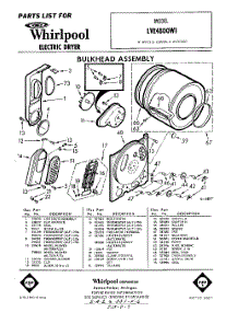 Whirlpool Dryer LVE4800W1 / Repair Parts