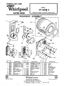 Whirlpool Dryer LVE6600W0 / Repair Parts