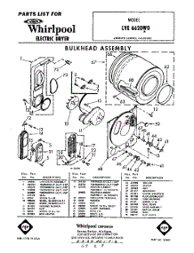 Whirlpool Dryer LVE6620W0 / Repair Parts