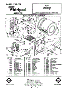 Whirlpool Dryer LVI8701W1 / Repair Parts