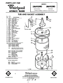 Whirlpool Washer LWA9920W0 / Repair Parts