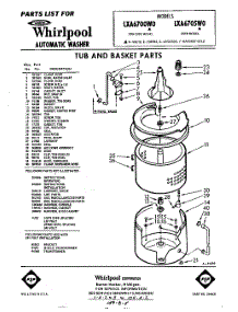 Whirlpool Washer LXA6700W0 / Repair Parts