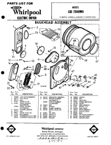 Whirlpool Dryer LXE7500W0 / Repair Parts
