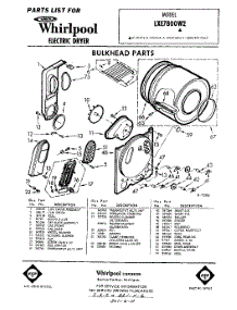 Whirlpool Dryer LXE7800W2 / Repair Parts
