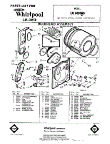 Whirlpool Dryer LXI8801W0 / Repair Parts