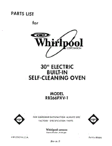 Whirlpool Oven RB266PXV1 Repair Parts