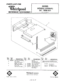 Whirlpool RCK803 / Repair Parts