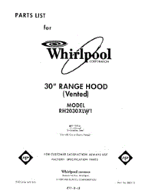 Whirlpool Model RH2030XLW1 parts in stock and ready to ship!